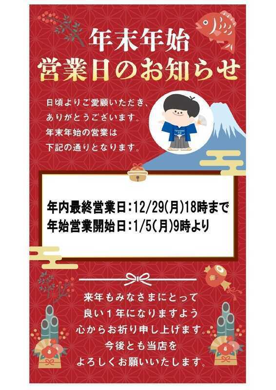 | 2025/12/23 年末年始の営業時間のお知らせ ★年末年始の営業時間のお知らせ★ 年末年始の営業時間は下記の通りとなります。 年内最終営業日:12月29日(月)18時まで 年始営業開始日:1月5日(月)9時より 休業中は、電話番号082-922-3370か 当店公式LINEアカウント内のチャットにて 対応させていただきます。 |